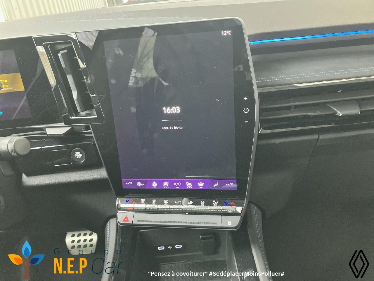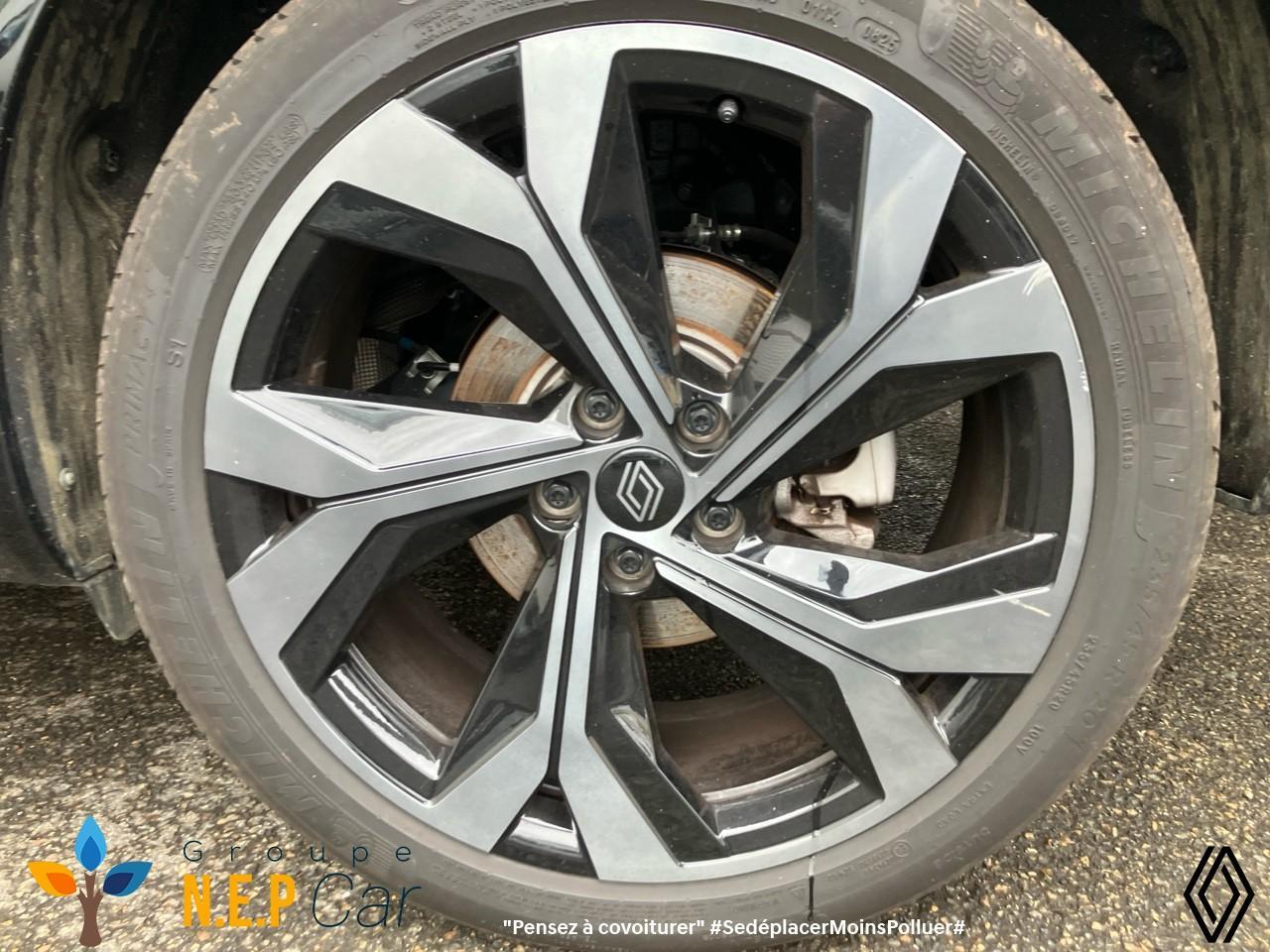 Direction assistée - Verrouillage centralisé - Barres de toit longitudinales - Commutation automatique des feux de route/croisement - Système de surveillance de la pression des pneus - Appel d'urgence - Multi-sense - Carte Renault accès et démarrage mains libres - Chargeur smartphone à induction - Lève-vitre AR électrique à impulsion - Lève-vitres AV électriques à impulsion - Sièges AV chauffants - Volant chauffant - Aide au freinage d'urgence - Airbags frontaux (conducteur et passager) - Airbags latéraux, milieu AV et rideaux - Alerte de distance de sécurité - Contrôle dynamique de trajectoire ESC avec ASR - Feux de jour à LED - kit de gonflage - Sièges avec système ISOFIX - Avertisseur d'angle mort et prévention sortie de voie en cas de dépassement - régulateur de vitesse adaptatif - Frein de parking électrique avec fonction Auto-Hold - Caméra 3D vision 360° - Easy park assist et aides au parking avant, arrière et latérale - Feux AV full LED Adaptative Vision - Palettes au volant - Banquette AR coulissante 1/3-2/3 avec accoudoir central - Climatisation automatique bi-zone